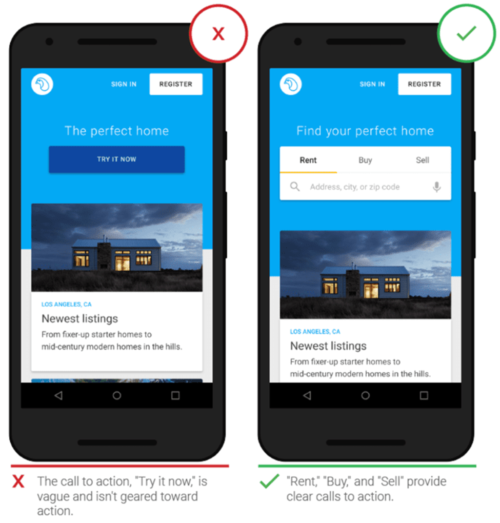 - Choose specific words over vague words: ‘Try it Now’ is a common call to action, however, it doesn’t really tell the user what will happen next.